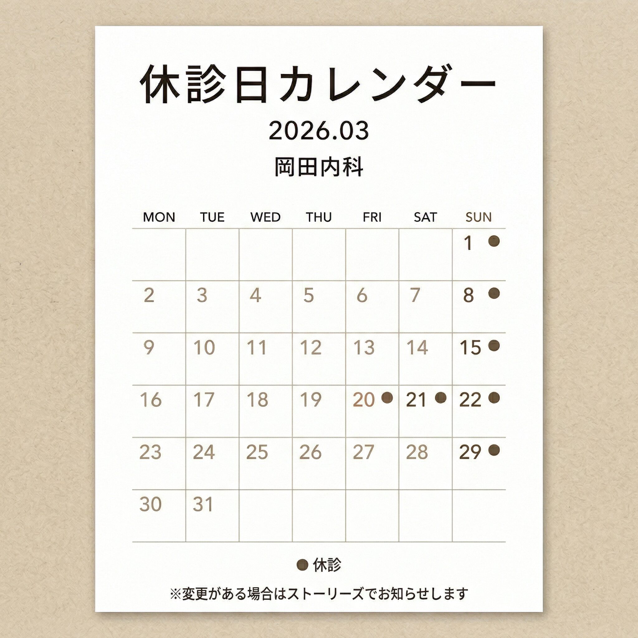 3月の休診日
