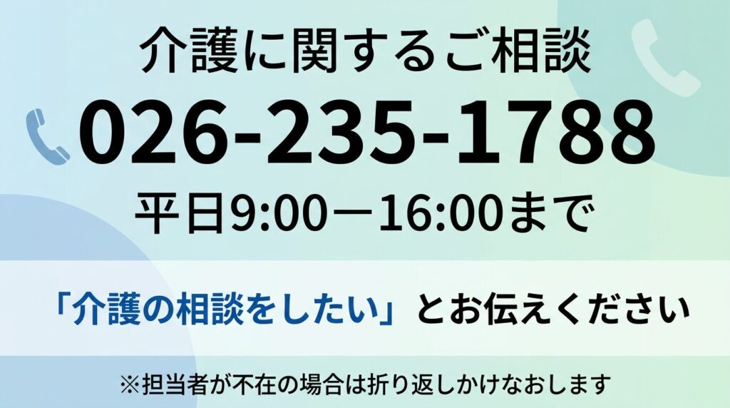 「どこに相談すればいいかわからない」「親の介護をそろそろ考えたい」「介護施設の特徴について知りたい」——そうしたお悩みをお持ちの方は、ぜひ一度ご連絡ください。