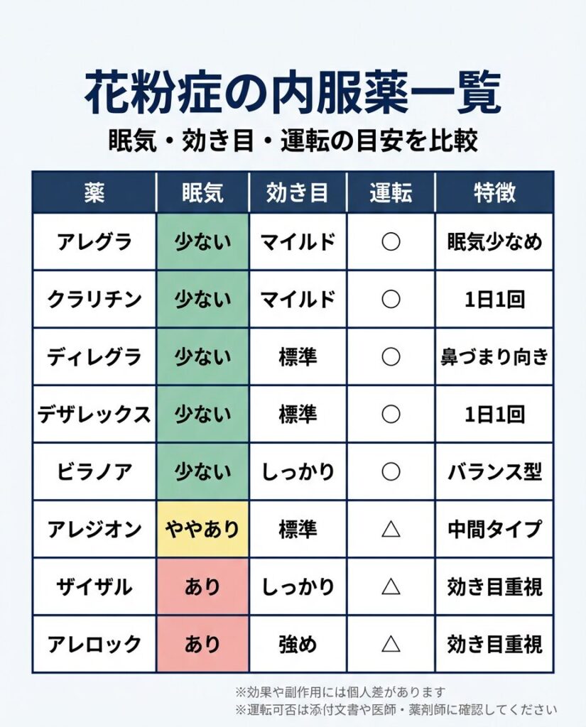 実際には「眠くなりにくい薬」が重視される場面が増えています