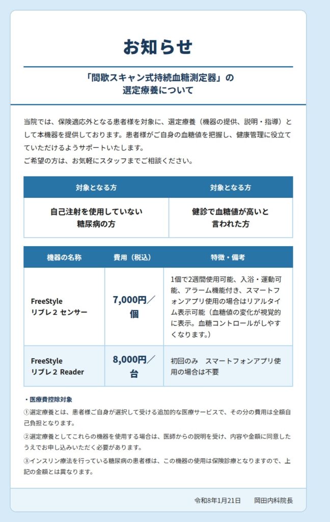 「間歇スキャン式持続血糖測定器」の選定療養について